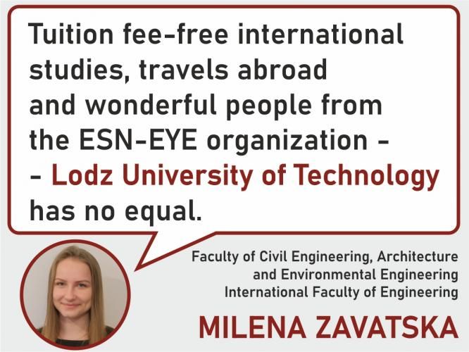 Tuition-free international studies, trips abroad and great people I work with in ESN-EYE - Lodz University of Technology is second to none.