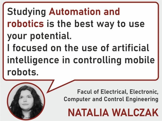 Automation and Robotics is a field of study for enthusiasts of new technologies that will make daily life easier. Natalia Walczak, a graduate of Master’s programme, talks about the studies and development opportunities in this field.