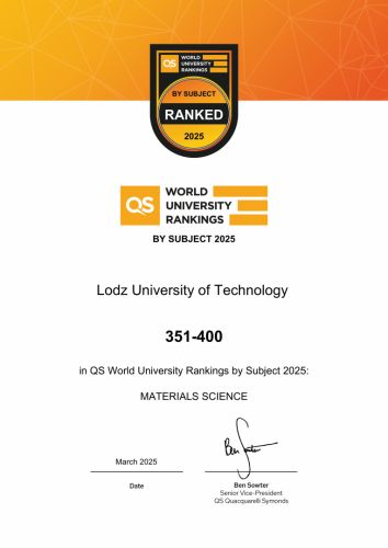 In Materials Science, Lodz University of Technology advanced and ranked in the 351-400 range (previously 401-420). In this category, ten other Polish universities were also classified. In Mechanical, Aeronautical & Manufacturing Engineering, TUL ranked in the 401-450 range, alongside nine other Polish institutions. Another recognition for the university is its presence in Chemistry, where it was ranked in the 601-670 range, joining ten classified Polish universities.
