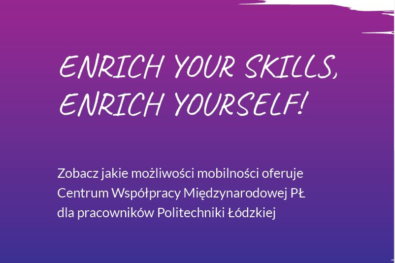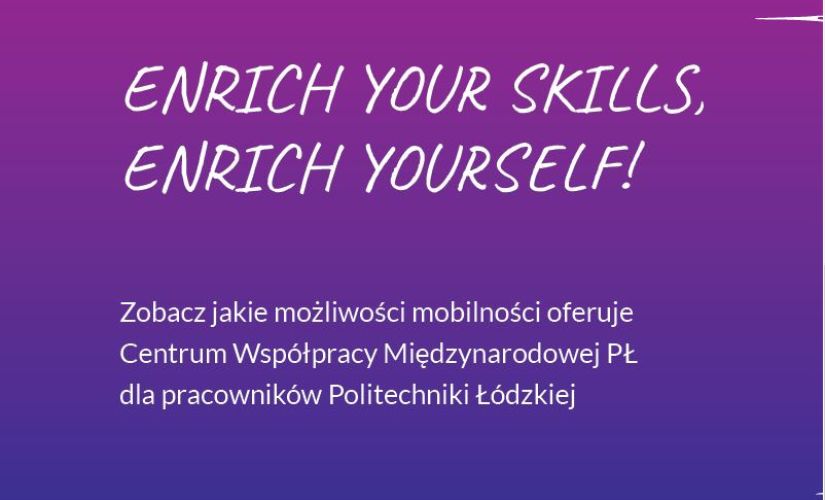 Centrum Współpracy Międzynarodowej PŁ zaprasza pracowników Politechniki Łódzkiej do udziału w kwalifikacji na wyjazdy zagraniczne w celach dydaktycznych lub szkoleniowych. Aktualnie trwa dodatkowy nabór zgłoszeń na wyjazdy w ramach realizacji umowy nr 2023-1-PL01-KA131-HED-000126739.