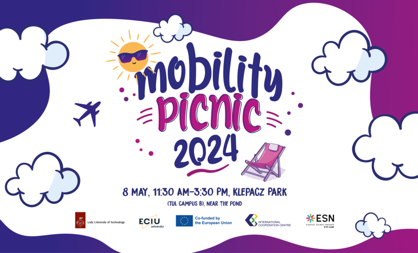 The first edition of Mobility Picnic will take place on May 8, 2024 (Wednesday) between 11:30 a.m. and 3:30 p.m. in Klepacz Park on campus B of Lodz University of Technology (near the pond).T