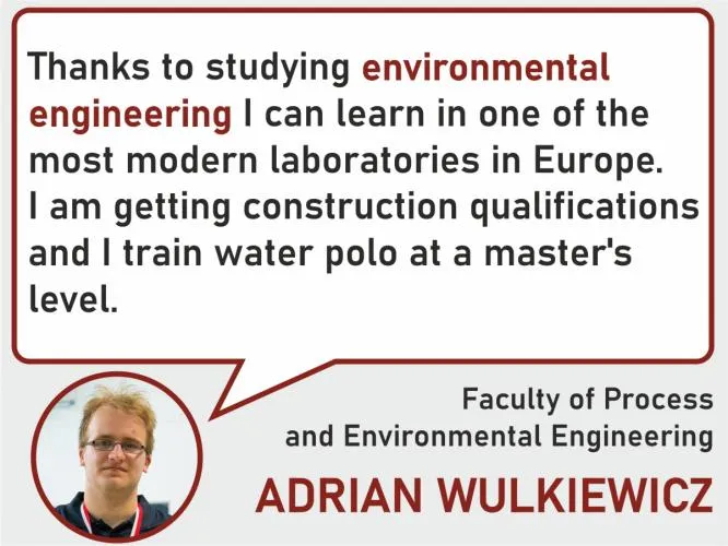 Dear secondary school graduates and future students of Lodz University of Technology! My name is Adrian Wulkiewicz. I am a third-year engineering student at the Faculty of Process and Environmental Engineering. Today I will tell you about the studies that fulfill my dreams.